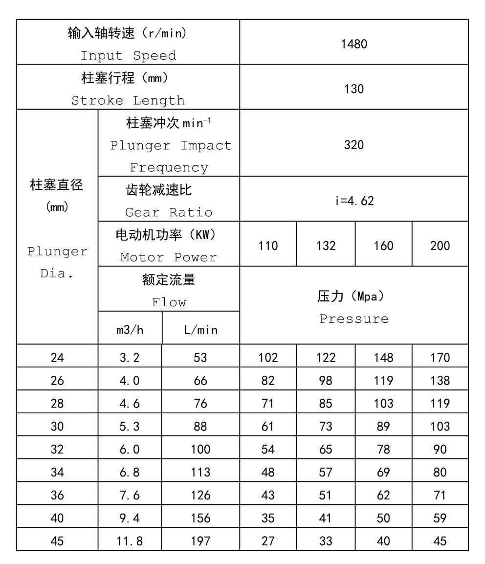 The pump is equipped with in-built chevron gear deceleration device . It has the properties of high transmission efficiency, low noises, stable operation, small size and compact construction. During the running, high-speed shaft can automatically adjust in horizontal direction, which makes it has balanced and reliable transmission, low friction coefficient, high lubrication, low temperature rising at power end, long-time continuous operation, etc. Input and output valves for fluid end of the pump are designed in mutually perpendicular position to increase the working pressure. According to different parameter requirements, different kind of stuffing box can be used. It is make sealed. It is very convenient and save time. The max.crankshaft thrust force is 82KN.