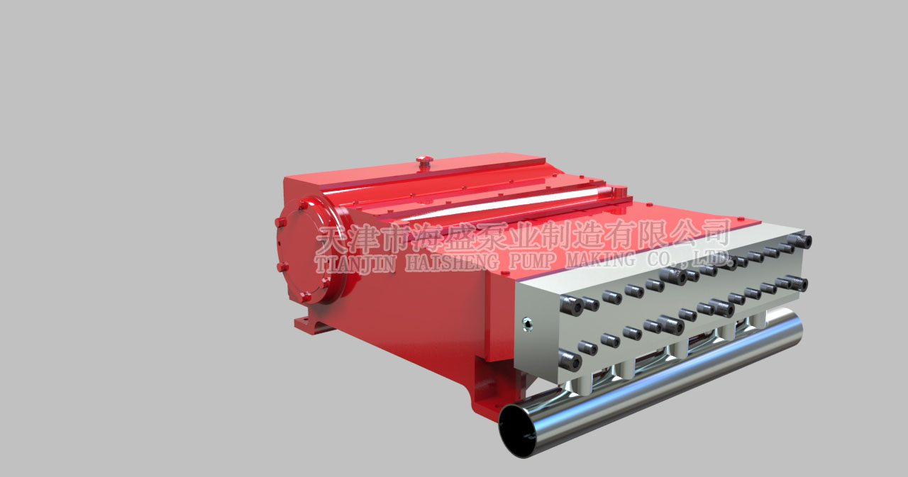 Input and output water valve device of the pump is designed for one integrated set in horizontal direction. The output valve core can be used as input directing part. There is only one spring for both input and output valves, so the structure is compact and simple, easy to dissemble. It has also the properties of small flow loss, stable operation and low noise. The max.crankshaft thrust force is 125KN.
